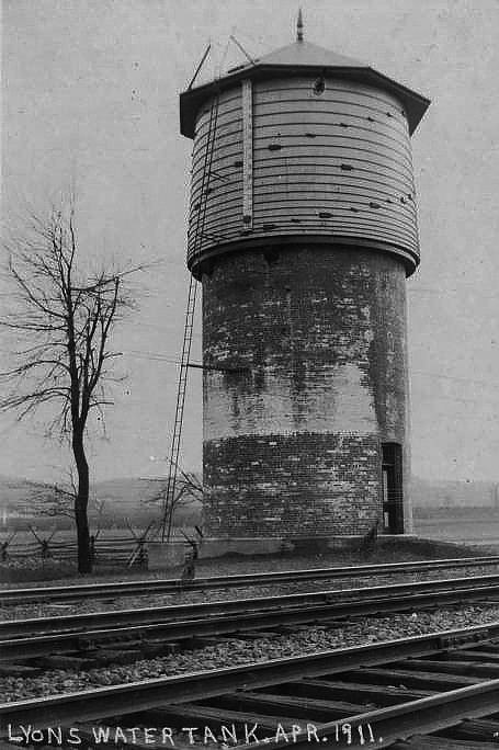 This water tower supplied the railroad steam engines with water from the Lyons Dam was located just east of the Borough of Lyons.